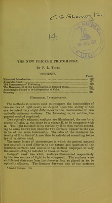 Credit: The new flicker photometry : thesis submitted ... for the degree of doctor of philosophy in the faculty of Pure Science, Columbia University. Source: Wellcome Collection.