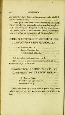 Credit: Pharmacopoeia chirurgica; or, a manual of chirurgical pharmacy; comprising all the valuable formulae of our several pharmacopoeias appertaining to this branch of science: with notes. And observations as well, on the method of compounding, as likewise on the properties and use of each / By J. Wilson. Source: Wellcome Collection.