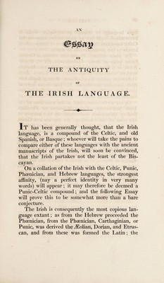 An essay on the antiquity of the Irish language; being a collation of the Irish with the Punic language / With a preface, proving Ireland to be the Thule of the ancients ... To which is added, a correction of the mistakes of Mr. Lhwyd ... and of ... Mr. Baretti ... And, Remarks on the [Vallancey's] Essay on the antiquity of the Irish language ... addressed to the ... London Chronicle in ... 1772 [signed Celticus] ... By Charles Vallancey.