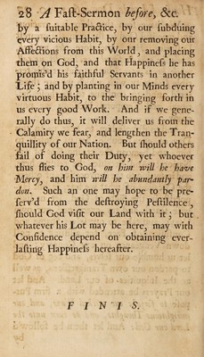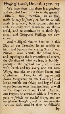 Credit: A sermon preach'd before the Lords Spiritual and Temporal in Parliament assembled, at the collegiate church of St. Peter's Westminster, on Friday, December the 16th, 1720 : being the day appointed by His Majesty for a general fast and humiliation for obtaining the pardon of our sins, and averting God's heavy judgments; and particularly for beseeching God to preserve us from the plague, with which several other countries are at this time visited / by the Right Reverend Father in God, Hugh Lord Bishop of Bristol. Source: Wellcome Collection.