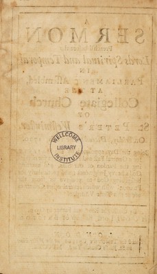 Credit: A sermon preach'd before the Lords Spiritual and Temporal in Parliament assembled, at the collegiate church of St. Peter's Westminster, on Friday, December the 16th, 1720 : being the day appointed by His Majesty for a general fast and humiliation for obtaining the pardon of our sins, and averting God's heavy judgments; and particularly for beseeching God to preserve us from the plague, with which several other countries are at this time visited / by the Right Reverend Father in God, Hugh Lord Bishop of Bristol. Source: Wellcome Collection.