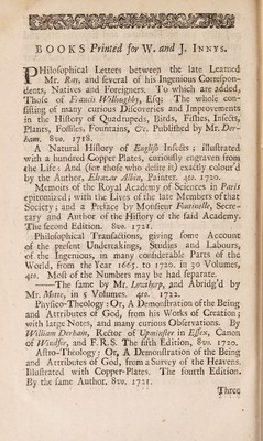 The wisdom of God manifested in the works of the creation. In two parts. Viz. The heavenly bodies, elements, meteors, fossils, vegetables, animals (beasts, birds, fishes, and insects), more particularly in the body of the earth, its figure, motion and consistency; and in the admirable structure of the bodies of man and other animals; as also in their generation, &c. With answers to some objections / By John Ray.