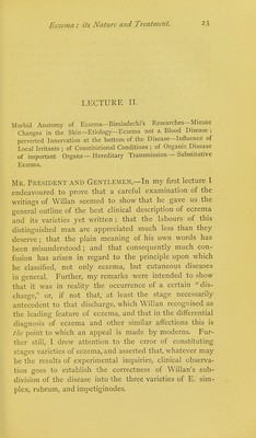 Eczema, its nature and treatment : and incidentally, the influence of constitutional conditions on skin diseases being the Lettsomian lectures for the session 1869-70 delivered before the Medical Society of London / by Tilbury Fox.