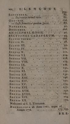 ![^^ deadly iu fce ^ 1 a g Brevis .Deferiptio CONSTITUTIONIS..A il NI 1775 n À ^ pag. I-— 4. CONSTITUTIO ANNI 1776: ; $f- dJonuanda i: V (OE AE. — bujus con iénio PN enumeratio. Mnorbos fum. s. : ; - CN 2 QU VR RUE RDAX*TUS.T 0.057 0. UH Ep 7 à ManTrtus. .. fli. UL Phauritidis €? Poripieumie Hiliófe defiri- — /— prio. f ia o dvd or e C. Purie Morborum fuccef P0HAS, . MN QITU TIS, ^w Rbeumatismus bihofus. |... (5. 5.045. — Catarrbus | biliefus. 4 dM orca a. MAPKILIS.,,. EE 21. D— Morborum Bilioforum profecutio GR que ad eoru vic eed medendi qetbodum v Jpettant. . : 0| 22-62. MaAjvs. : : | j2- M end o dia T, Moris vheunatici V» £0- ^ | rum differentiis. . ] : f$. Po Pleuritidis rbeumatice defiriptio. : $9- — Canones circa ufum vef temm in Pleariti- mol 46ObOdNAL . 560. v qu ; 65. JvNivs; . nir 68. — Exemplum Peripneumonie vere vido bilicfo Jfyftematis gaftrici fripate. : . 4bid. fegq. Jurivs. Rr. VEMM — Pleuritidis ecculte defiriptio, , ; TA. .AvGUsTUS. [4 R s ET». — Litbotomie Exemplum. ian E oo S99 $](https://iiif.wellcomecollection.org/image/b28776628_0001_0011.jp2/full/800%2C/0/default.jpg)