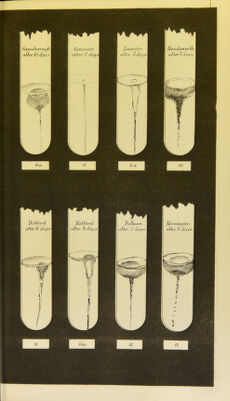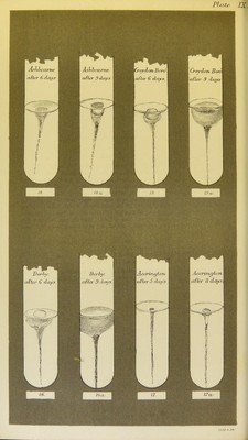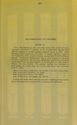 ![BACTERIOLOGY OF CHOLERA. PLATE X. [Note.,—The drawings in this, as in other plates, VII. to XII. inclnBive, represent stab-euUv/res in gelatine of the comma-bacilli obtained from different samples of cholera material examined by me in 1893. These drawings enable comparison to be made, as regards rapidity of growth and liquefaction of the gelatine, between comma-bacilli from the diflferent sources. The gelatine medium used was in every instance of precisely the same composition, and in all the subcultures depicted the contained comma-bacilli were an equal number of removes from the raw material whence they were derived. The gelatine medium was inoculated in each instance by a single stab, and all the subcultures were incubated at 20° 0.—E.K.] Figs. 18 and 18 (a), Ilkeston ; No. XXX. in the text of this report. Pigs. 19 and 19 (a), Appleton-le-Street (1) (Malton Rural); No.XXXIII. in the text of this report. Fig. 20, Great Yarmouth (1); No. XXXVI. in the text of this report. Figs. 21 and 21 (a), Tividale (Eowley Eegis); No. XXXVIII. in the text of this report. Fig. 22, Southwark (St. George the Martyr); No. XXXIX. in the text of this report. Southwark is an example of comma-bacilli that are practically non- liquefying: and Ilkeston and Tividale (Eowley Regis) represent comma- bacilli that liquefy the gelatine only slowly.](https://iiif.wellcomecollection.org/image/b20395899_0312.jp2/full/800%2C/0/default.jpg)