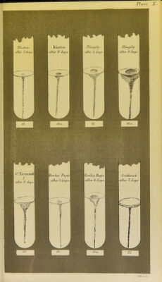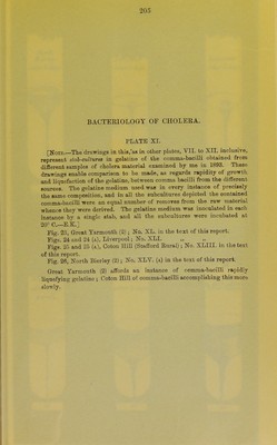 ![BACTERIOLOGY OF CHOLERA. PLATE XII. [Note.—The drawings in this, as in other plates, VII. to XII. inclusive, represent stab-cultures in gelatine of the comma-bacilli obtained from different samples of cholera material examined by me in 1893. These drawings enable comparison to be made, as regards rapidity of growth and liquefaction of the gelatine, between comma-bacilli from the different sources. The gelatine medium used was in every instance of precisely the same composition, and in all the subcultures depicted the contained comma-bacilli were an equal number of removes from the raw material whence they were derived. The gelatine medium was inoculated in each instance by a single stab, and all the subcultures were incubated at 20° 0.—E.K.] Fig. 26 (a). North Bierley (2); No. XLV. (a) in the text of this report. Figs. 27 and 27 (a), Balby (Doncaster Rural); No. LL in the text'of this report. Fig. 28, Eawmarsh ; No. LII. in the text of this report. Fig. 29, Bingley (Township) ; No. LIV. in the text of this report,. Fig. 30, Keighley ; No. LV. in the text of this report. Bingley and Keighley afford instances of comma-bacilli liquefying the gelatine with great rapidity,](https://iiif.wellcomecollection.org/image/b20395899_0318.jp2/full/800%2C/0/default.jpg)