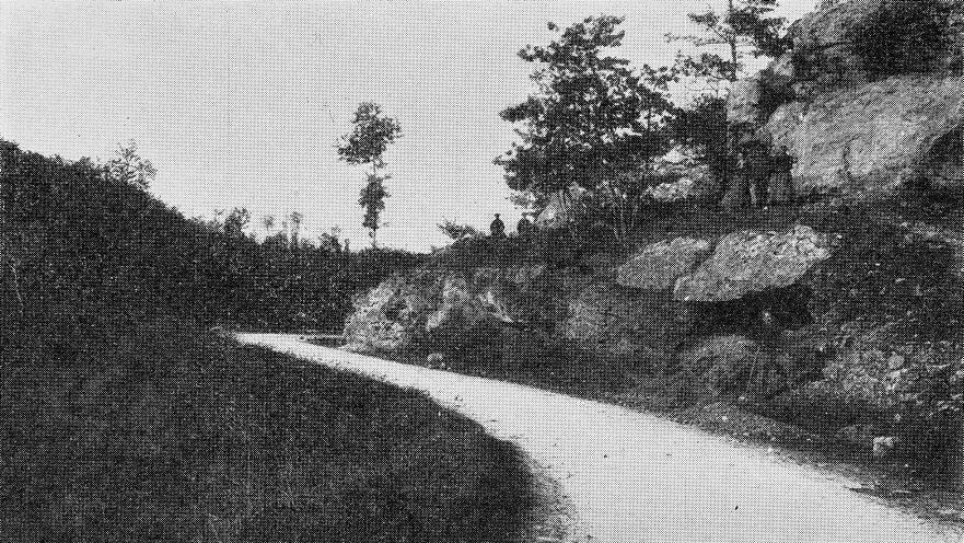 Credit: M0015782: View of prehistoric station of La Ferrassie, before excavation, from the road. Source: Wellcome Collection.