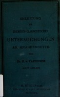 Anleitung zu chemisch-diagnostischen Untersuchungen am Krankenbette / von H. v. Tappeiner. In copyright. Source: Wellcome Collection.