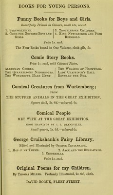 ![Illustrated Works—Continued.] The Gallery of Byron Beauties: Portraits of the Heroines of Lord Byron’s Poems, from Drawings by the most eminent Artists. Super-royal 8vo, morocco, 31s. 6d.highly coloured, £3. Heath’s Waverley Gallery. Portraits of the principal Female Characters in the Writings of Scott. Thirty-six highly- finished Plates. Super-royal 8vo, splendidly bound in morocco, 31s. 6d.; with coloured Plates, £3. Gallery of the Graces; or, Beauties of British Poets. Thirty-six beautiful Female Heads by Landseer, Boxall, F. Stone, &c., illustrating Tennyson, Campbell, Rogers, Landon, &e. Super-royal 8vo, 31s. 6d. morocco ; with coloured Plates, £3. Toriosities of Glass-making-: A History of the Art, Ancient and Modern. By Apsley Pellatt, Esq. With Six beautifully coloured Plates of Antique Yases, &c. Small 4to, cloth, 12s. The Cartoons of Raffaelle, from Hampton Court Palace. Engraved by John Burnet. With Descriptive Letterpress and Critical Remarks. Seven large Plates (24 inches by 34). In wrapper, 31s. 6d.; or coloured, 63s. Vestiges of Old London: A Series of finished Etchings from Original Drawings, with Descriptions, Historical Associations, and other References. By J. Wykeham Archer. Imperial 4to, India proofs, 50s. Views in Rome; Comprising all its principal edifices, and its surrounding Scenery. Engraved by W. B. Cooke. Thirty- eight Plates, with a Panoramic View of the City. 4to, 21s.; India proofs, £2 2s. The Bible Gallery: Eighteen Portraits of the Women mentioned in Scripture, beautifully Engraved from Original Draw- ings, with Letterpress Descriptions. Imperial 8vo, handsomely bound, 21s.; with Plates beautifully coloured, 42s. The Women of the Bible. Eighteen Portraits (forming a Second Series of The Bible Gallery). Handsomely bound, 21s.; coloured, 42s.](https://iiif.wellcomecollection.org/image/b24861224_0480.jp2/full/800%2C/0/default.jpg)