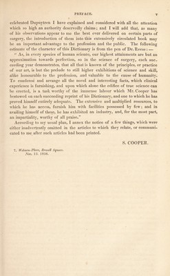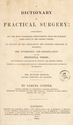 A dictionary of practical surgery: comprehending all the most interesting improvements, from the earliest times down to the present period ... forming a catalogue of surgical literature arranged according to subjects / by Samuel Cooper.