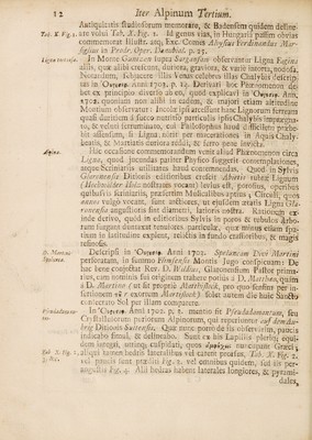 Ouresiphoites Helviticus, sive itinera Alpina tria. In quibus incolæ, animalia, plantæ, montium altitudines barometricæ, cœli & soli temperies, aquæ medicatæ, mineralia, metalla, lapides figurati, aliaque fossilia, & quicquid insuper in natura, artibus, & antiquitate, per Alpes Helviticas & Rhæticas, rarum sit, & notatu dignum, exponitur, & iconibus illustratur / authore Johanne Jacobo Scheuchzero.
