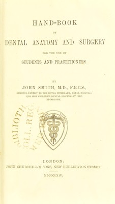 Hand-book of dental anatomy and surgery : for the use of students and practitioners / by John Smith.