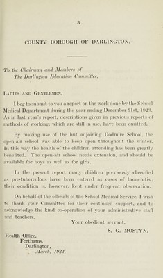 [Report 1923] / Medical Officer of Health, Darlington County Borough.