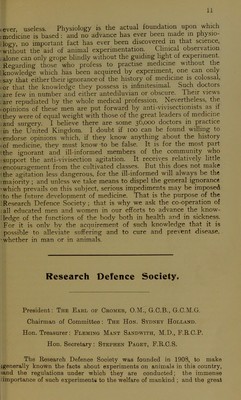 Credit: An address by E.A. Schäfer ... on the case presented by anti-vivisectionists : (Annual General Meeting of the Dublin Branch of the Research Defence Society, March 24th, 1911). Source: Wellcome Collection.