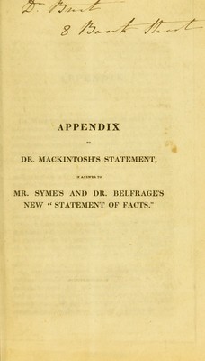 Appendix to Dr. Mackintosh's statement, in answer to Mr. Syme's and Dr. Belfrage's new 'Statement of facts'.