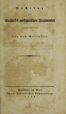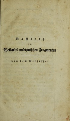Medizinische Fragmenten und Erinnerungen. [Nachtrag] / [Melchior Adam Weikard].