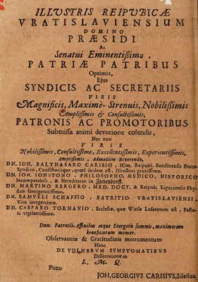 ![DISPVfAfro CMED1CA 1NAVGVRAL1S, Dcj SYMPTOMATIBUS, Q_V A M JEHOVA TR W NO oAZ) X1L1 ANTE JUSSU ET AII TOR ITATE LVUSTRIS oAC GRATIOS/SSIMa£ FACV ITATIS MEDlCtzAL 17^ ELBC 70 RALI hT PER ANTI QV A AD iV| C R VM V N l- WVEKSITATE „ SUB PRifiSlDlO RECTORIS p. t. MAGNIFICI y/Rf MOBILISSIMI, EXCELLENTIS SIm!, EXPERJENTISSIMI )N- JACOBI ISRAELIS , IED. DOCT. ET P. P. CELEBERRIMI, DN. PR^ECEPfORIS ATQ; PATRONI PER AETATEM COLENDI ; 'ro fummis in nArte Medica Honoribus (f Privi* legtis rite confequendis , Publica? Eruditorum Ceufura? exponit JOHANNES GEORGIUS CARISIllS , Hi R SCK 8 E R G A-Sl6E $ IUS. xMTd Diem XIII. CMarty , MDC LXXIIl. . _Horis Locoque confuetis. Typis ]0H, CHRISTI A NI~WALT ERI , Aead, Typogr,’](https://iiif.wellcomecollection.org/image/b30764233_0001.jp2/full/800%2C/0/default.jpg)