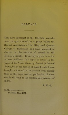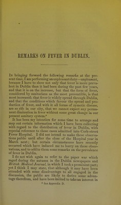 Remarks on the prevalence and distribution of fever in Dublin : illustrated by a map, tables, and diagrams; with appendices on sanitary matters in that city / by Thomas Wrigley Grimshaw.