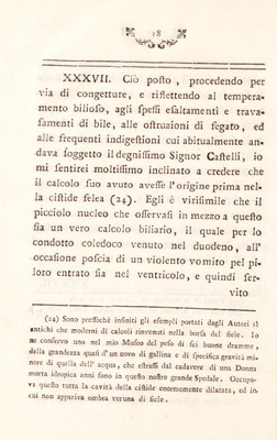 Dell'uscita di una pietra per la via dell'esofago : dissertazione storico-fisica / di Antonio Moreali.