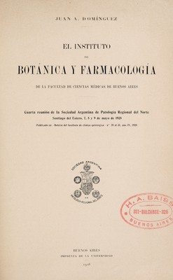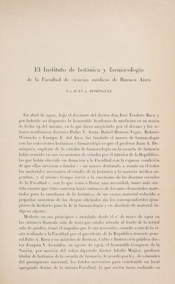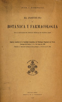 El Instituto de Botánco y Farmacología de la Facultad de Ciencias Médicas de Buenos Aires / [Juan A Domínguez].