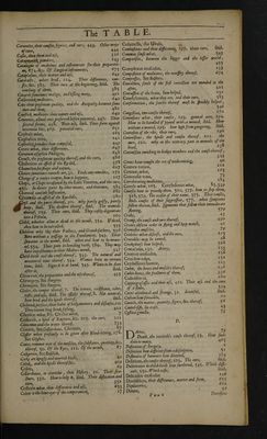 ![/ The TABLE. Veterfms^ 17<^, ^38. -their nfe. ibid. Devils , and their differences , 602. T'heir titles and names^ ibid. T^hey are terrified and angered by divers do4 ^13 408 6'^6 157 ibid, 165 160 17 E. things^ Devil of the Sca^ Dhbete rphat^ the caufes ffgnsj and cure^ Diaphoretic^ medicines^ Diaphragma, See Midriff-^ vphy called Phrenes, Diaphyfis Diary fever^ the cattfes andfigns^ I'J'J* theatre Diarthrofis, Die-bone^ Diet hathpomr to alter orpreferve the temperament^ Diet convenient for fitch as have the Gout^ For fitch as fear the Stone^ 394. In prevention (f the Plague^ 4^3^ In the cure thereof 5*^4 Differences of mufcles^ 5P Digitum fiexores mufeuli, 150, 151, 161 Digitum tenfores mufeuli, 150,151,1^1 Diphe Tphat^ 108 Difeafe the definition and divifion thereof 2caufes^ ibid. Difeafes firange and monftrous^ 31 Difeafes incident to fanguine^ cholerick^^ phlegmatick^ and melancholic}^ perjbfis ^ 10. whereof fame are heredi- tary.^ 534. fupernaturalj ^04. Monjirous accidents in them^ do 8 DiJIocatipns)their}{inds and manner^ 34'^* their differences^ 3415,347. cattfeSj ibid. Signs^ ibid, prognofticl^s^ Hhe general cure-y Symptoms that may befall a dijlocated memhery 3 4^ Difiocation of the jaw^ 35T* cm, ibid. Of the Collar-bone^ 352. Of the fpine^ ibid. Of the head, Of the nec}^^ ibid. Of the Kump^ 355* Of the ribs., ibid. Of thefhcmldery 355. Of theelbow^ 3^3. Of the Sty- liiormis proceffus, 365. Of the wrijiy ibid. Of the af- ierwrifi^ ibid. Of the fingers^ 366. Of the thigh or hffibid. Of the whirlboncy 1. Of the lepiee forwards ^ ibid. Of the greater and leffer Fociley^'j2. Of the heef ibid. Of the Paflern or anlile-bone^ 573* Of the injiep and bacle^ rf thefooty ibid. Of the toes^ ' ibid. Difmernhringy See Amputation^ Diflemperature and the diversity thereof 2 6 Difiillation and the hfiids thereof 66:^. Fornaces and the vc(fels therefore., 66/\.. What to be confidered therein., 665. HoiV to prepare the materials therefore, 66y, How to di(iill waters, ibid. How Aqua vitae, 558. Howto rebiifie them, 66p, fo di(iill in the Sun, ibid. Byfil- tring, ibid. Of Oils, 6yo.' Of Spirits,'] Of Oils of Gums, \\iid. Of Oil of Vitriofi 735 Docility ofBeajls, 4O Dogs their love to their majlers, 38. Jheir docility, 43. ^Why they become mad fooner than other creatures, 470, How their bites may he }eyown,ibid,PrognofiicJes, 471. I he cure of fuel) as are bitten by them, ' ' C 47 2 Doricinum , the poyfonoiis quality thereof and the cure, 483 Doves free from adultery, 3 ^ Draco marinus, the Sea-Dragon his poyfonons pun&ure, the . jymptoms and cure, 481 Dracunculus 213. fhe cure, ibid. Dragons their craft, 42 Dreams of the fanguine,choleric}e^, phlegma^tich^,and melanchor Ucli^ perfons, 10. Not to be neglected, 23 Dropfie whai,2 02. I he differences, fymptoms and caufes,ib'id. Signs and Prognffickj,'ibiU. fhe cure, 203. Following upon a tumor of the mefentery, <^66 Dugs,their fuhfiance, magnitude, &c. po. What to be done to drynpmilk^ . • 558 }JnQ'd£iram,the mag?iitude,&c. 6B D’3. vn2tcr what, lop, The hurts thereof by frepanning, and how helped, 251. Pemedies for the inflammation and /Ipojhimation, thereof ibid. Why it eafily endures acridme- ibid. 386 p5 I2d 3 2^6 230 127 ibid. 8+ how helped, F,ars of the heart. Ear-wax, for what ufe it Jerves, Earth a cold and dry element, Earthquahgs their caufe, Ecchymofis what, and how cured. Echo, the caufe thereof, EffiiHs of Phlegm, 8. Of choler and melancholy. Ejaculatory veffels in men, 7p. In women. Elbow the difiocation thereof 3^3* ^0 refiore it difiocatedj outwardly, ibid. Tlothe infide, 3^4. Why mojifubjea to the anchyliofis, ibid. Elements how widerfiood, and their principal qualities, 3. what thofe ff generation are, 4. What thofe of mixt bodies are, ibid. The caufe of their tranfmutation,2’]‘y Elephants, their jirength, piety, dec, 3p. Where bred, and their qualities, 524 Embalming the dead, 74^• T^he manner how, ySp Embry on, when it takgs that name, 542 Embrocation what, and how performed, 6^0 Emollient and refolving medicines, 18 d Emplafiers what, their differences, <547. Signs th^ are per¬ fect ly boy led, 648. Dbeir ufe, 6yp, Cautions in their application, jg2 Emplalhum de Vigo cum Mercuric, <548. De gratia Dei, ibid. De Betonica five de Janua, ibid, Oxycro- ceum, (5^0, De ccrufa, ibid, Tripharmacum fei|W nigrum, ibid. Diapalma feu Diacalcitheos, ibid, Contrl^^ Rupturam, ibid, De Mucilaginibus,*W. De r[\imo,ibid. Diachylum magnum, ibid. Empyema J17W, 201. Tlhe cure thereof, ibid; Emptinefs, 23 Emulgens Arteria, 74. Vena, yS Enarthrofis, a kjnd of articulation, 15 5 Enterocele a Ifind of Rupture, 2*05 Ephemera febris, lyy, Thecaufes and the figns thereof, ttiid, Ihecure, ibid. Epidermis, Epididymis, Epigaftrium 55, fhe conteining parts thereof, ibid. Epigafirica vena, . _ yy Epi^huis what, 130 Epiploon *^5 Epiplois vena, • . 7^ Epiplocele, 205 Epithemes^toflrengthen the principal parts, 60^2. thewcompo- fition andufe, 651 Epomis mufculus, 145 Epulis what, the Jymptoms and cure, ip/ Epuloiicl^, or sl^nning medicines, their Ifinds and ufe, - 53P Errhines their differences, defeription and ufe 653 Eryfipelas what, 178. what tumor referred thereto, 172. • the differences thereof, , 178 Erythrois tunica, 7^ Efchar how to hafien the falling away thereof, 51 d. Medi¬ ci n es caufing it, <540 EJcharotkky, <^40. Why ufed to Jpread ulcers, 2 6y Efiridg between a bird and beafi, 620. The fceleton of one, ibid. EvacuatiQH and the kinds thereof, 23. What to be obferved therein, . . . 24 Eunuchs ajfimilated to women, ' * '' id Excrements of thefirJi,fecond, and third concfUion what, <^^2 Exeteffe, the ufe and hff time for it,2i. The quality thereof ibid. Exomphalos](https://iiif.wellcomecollection.org/image/b30342843_0798.jp2/full/800%2C/0/default.jpg)