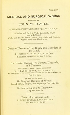 Credit: On ovarian dropsy : its nature, diagnosis, & treatment the result of thirty years' experience / by I. Baker Brown. Source: Wellcome Collection.