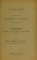 Address delivered at the opening of the session 1887-8 / by Sir James Paget. Public Domain Mark. Source: Wellcome Collection.