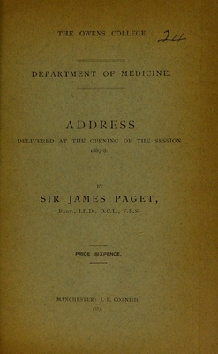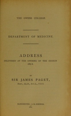 Credit: Address delivered at the opening of the session 1887-8 / by Sir James Paget. Source: Wellcome Collection.