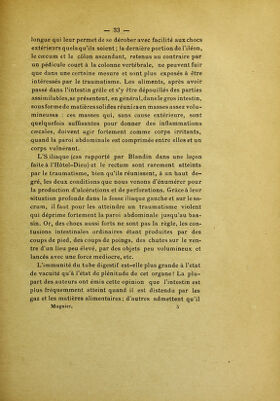 Des lésions tardives de l'intestin consécutives au traumatisme de l'abdomen sans trace apparente de contusion sur les parois abdominales : thèse pour le doctorat en médecine présentée et soutenue le 1er mai 1883, à 1 heure / par Lucien Mugnier ; président M. Brouardel, juges MM. Laboulbène, Troisier, Legroux.
