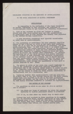 Credit: Royal Commission on Capital Punishment 1950 - Institute of Psycho-Analysis evidence. Source: Wellcome Collection.
