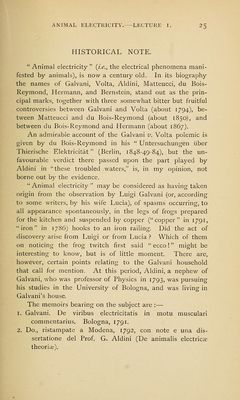 Lectures on physiology : first series on animal electricity.
