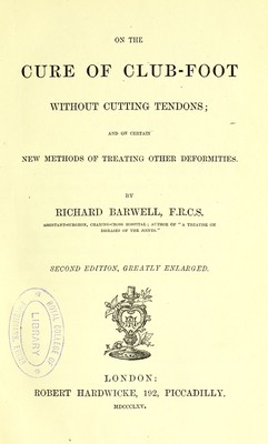 On the cure of club-foot without cutting tendons : and on certain new methods of treating other deformities / by Richard Barwell.