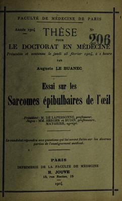 Credit: Essai sur les sarcomes épibulbaires de l'œiel ... / par Auguste Le Buanec. Source: Wellcome Collection.