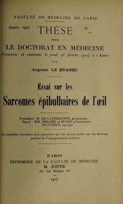 Essai sur les sarcomes épibulbaires de l'œiel ... / par Auguste Le Buanec.