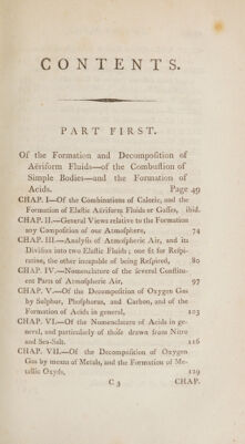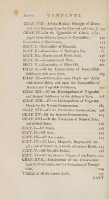 ![ft NTS. PYeRegY 2 pis. Of the Formation and Decompofition of Aériform Fluids—of the Combuftion of Simple Bodies—and the Formation of ne cAcids. Page 49 ~ CHAP. I—Of the Combinations of Caloric, and the Formation of Elaftic Aériform Fluids or Gaffes, ibid. CHAP. I].—General Views relative to the Formation any Compofition of our Atmofphere, 74 CHAP. II.—Analyfis of Atmofpheric Air, and its Divifion into two Elaftic Fluids; one fit for Refpi- ration, the other incapable of being Refpired, 80 CHAP. 1V.—Nomenclature of the feveral Conftitu- ent Parts of Atmofpheric Air, 97 CHAP. V.—Of the Decompofition of Oxygen Gas by Sulphur, Phofphorus, and Carbon, and of the Formation of Acids in general, 103 CHAP. VI.—Of the Nomenclature of Acids in ge- neral, and particularly of thofe drawn from Nitre and Sea-Salt. 116 CHAP. VIL—Of the Decompofition of Oxygen Gas by means of Metals, and the Formation of Me- tallic Oxyds, ai. C 3 CHAP.](https://iiif.wellcomecollection.org/image/b33490867_0045.jp2/full/800%2C/0/default.jpg)