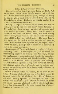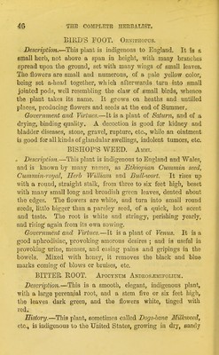 Credit: The complete herbalist, or, the people their own physicians by the use of nature's remedies showing the great curative properties of all herbs, gums, balsams, barks, flowers and roots ; how they should be prepared, when and under what influences selected, at what times gathered, and for what diseases administered. Also, separate treatises on fod and drinks ; clothing ; exercise ; the regulation of the passions, life, health, and disease; longevity; medication; air and sunshine ; bathing ; sleep, etc. Also, symptoms of prevalent diseases ; special treatment in special cases; and a new and plain system of hygienic principles / by O. Phelps Brown. Source: Wellcome Collection.