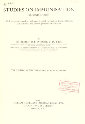 Credit: Studies on immunisation : 1st-2nd series / by Sir Almroth E. Wright. Source: Wellcome Collection.