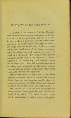A practical treatise on morbus coxarius, or, Hip-joint disease : showing the advantages to be derived from a system of mechanical management, for the prevention and cure of the contractions of the limb. With cases and illustrations / by William C. Hugman.