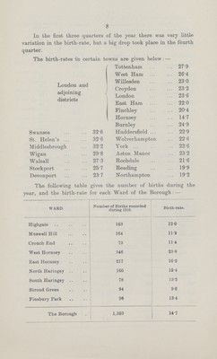 Credit: [Report of the Medical Officer of Health for Hornsey, Borough of]. Source: Wellcome Collection.