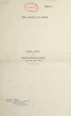 Credit: [Report 1937] / Medical Officer of Health, Martley R.D.C. Source: Wellcome Collection.