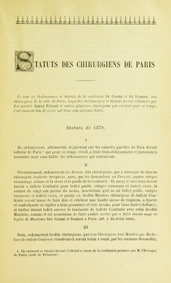 Credit: Premiers statuts des chirurgiens de Paris / Collationnés et publiés par ... E. Nicaise. Source: Wellcome Collection.