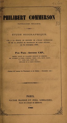 Philibert Commerson : naturaliste voyageur. Étude biographique... / par Paul-Antoine Cap.