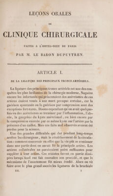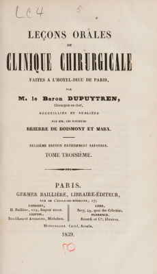 Leçons orales de clinique chirurgicale : faites a l'Hotel-Dieu de Paris / par M. le Baron Dupuytren ... ; recueillies et publiées par ... Brierre de Boismont et Marx.