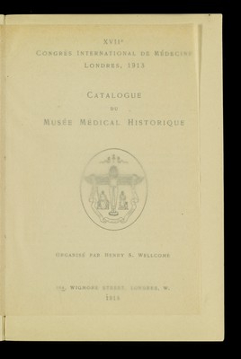 Credit: 'XVIIe Congres International de Medecine Londres, 1913. Musee Medical Historique de la Section D'Histoire de la Medecine'. Illustrated, blue paper cover. Source: Wellcome Collection.