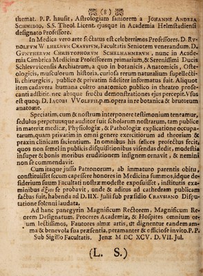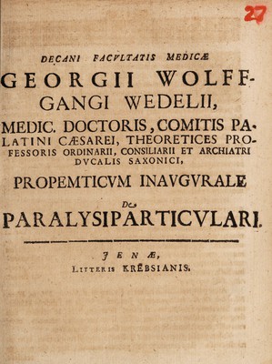 Credit: Propemticum inaugurale de paralysi particulari / [Georg Wolffgang Wedel]. Source: Wellcome Collection.