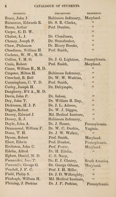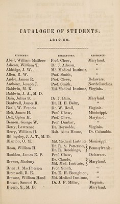 Credit: Forty-third annual circular of the medical department ... session 1850-51, and catalogue of students attending lectures session 1849-50. Source: Wellcome Collection.