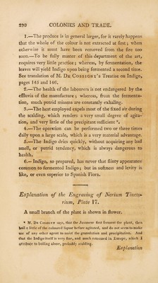 Account of a new species of nerium, the leaves of which yield indigo ... To which is added, a brief account of ... experiments made ... to throw ... light on the theory of that artificial reproduction. Also descriptions of two other plants, which yield indigo, and of one from Pegu, said to yield a green dye / [William Roxburgh].