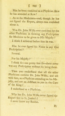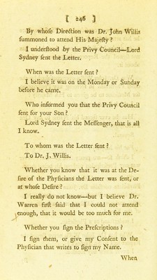 Credit: Report from the Committee appointed to examine the physicians who have attended His Majesty during his illness : touching the present state of His Majesty's health : containing examination of Dr. Warren, Sir Lucas Pepys, Dr. Willis, Sir George Baker, Dr. Reynolds and Dr. Gisborne : ordered to be printed 13th January 1789. Source: Wellcome Collection.