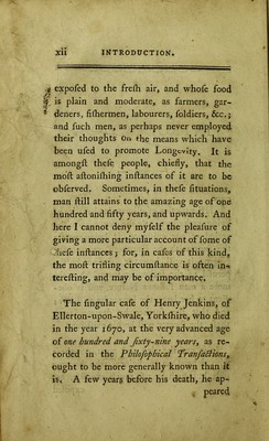 Human longevity: recording the name, age, place of residence, and year, of the decease of 1712 persons, who attained a century, & upwards, from A.D. 66 to 1799, comprising a period of 1733 years. With anecdotes of the most remarkable / by James Easton.