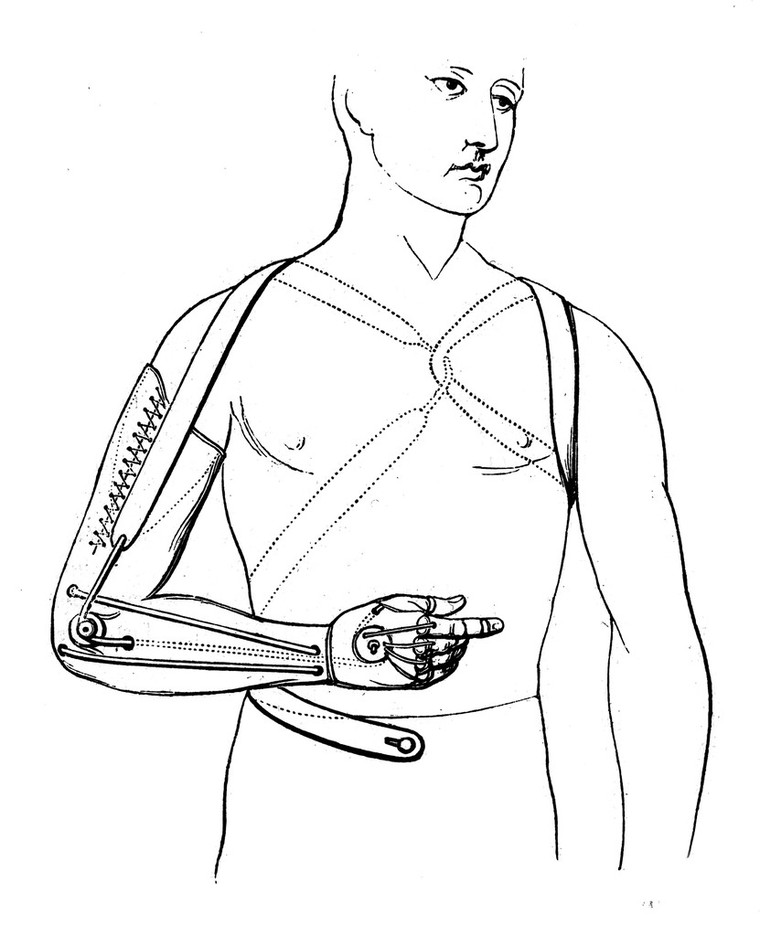 M0013410: Illustration of an artificial arm designed by de Beaufort. Public Domain Mark. Source: Wellcome Collection.